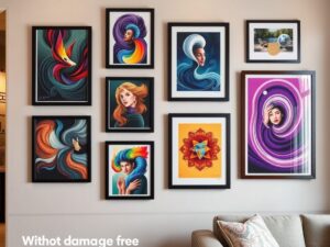 Estetyczna aranżacja galerii plakatów bez uszkodzeń ściany