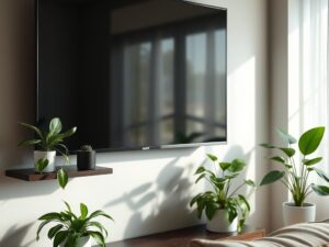 Ustaw rośliny w odpowiednich miejscach, aby poprawić mikroklimat wokół telewizora i jednocześnie zadbać o estetykę przestrzeni. Rośliny nie tylko oczyszczają powietrze, ale także wprowadzają naturalny element do wnętrza, co sprzyja relaksacji. Upewnij się, że są ustawione w taki sposób, by nie zasłaniały wentylacji, a jednocześnie znajdowały się blisko miejsca, w którym spędzasz czas, na przykład przy kanapie.
